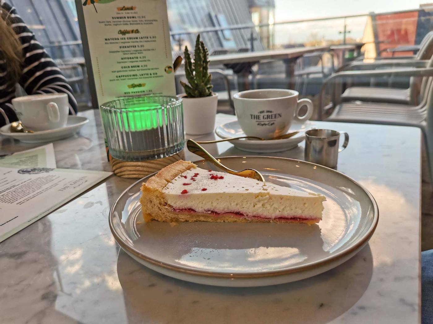 Findet man schlussendlich den Weg zum THE GREEN, wird man mit einer super schönen Aussicht, ungezwungener Atmosphäre und leckeren veganen Kuchen und Kaffee belohnt.